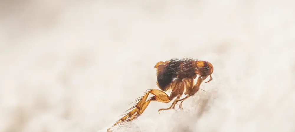 Fleas are tiny, wingless insects that feed on the blood of animals and humans. Measuring about 1/8 inch long, they are brownish-red and have flat, hard bodies that make them difficult to crush. These pests are known for their powerful legs, which allow them to jump long distances—up to 8 inches vertically and 16 inches horizontally.